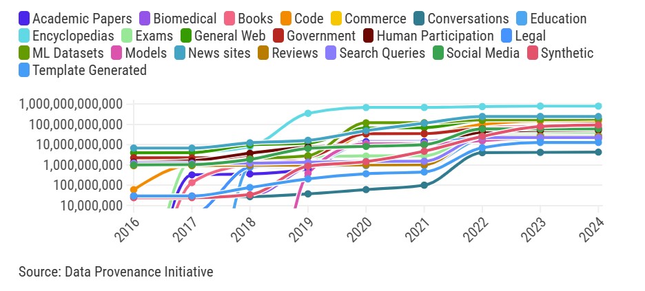 Training the models behind the latest AI powered app, chat or co-pilot we are using with increasing frequency takes an incredible amount of data. Just where does all that data come from? An effort from the Data Provenance Initiative a volunteer effort audited over 4000 sources used to train AI models to determine their origins. They provided the data to be analyzed by MIT and a recent story by the MIT Technology Review provides interesting insights and trends.